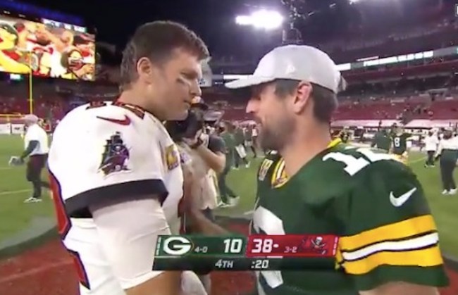 Two of the best to ever do it. @TomBrady and @AaronRodgers12 exchange words after the @Buccaneers win. pic.twitter.com/CSPjJkI0sf