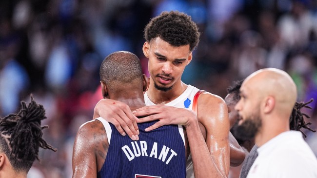 While Wembanyama’s defensive ability already has him at or near the top of the league, his unlimited offensive potential has a ways to go before he fulfills it. That being said, he’s pretty good on that end, and now he wants to go to Phoenix Suns and Team USA star Kevin Durant for inspiration.
