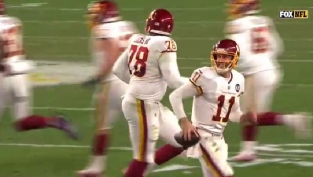 Alex Smith runs off with the ball causing an “administrative issue” and stopping the clock to give Washington (+6.5) time to kick