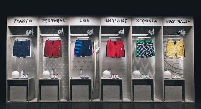 In the spirit of The World Cup, Nike’s surf arm, Hurley, just released their second World Cup National Team Collection line of Phantom board shorts. Hurley’s signature Phantom board shorts feature the official team crests and colors of participating World Cup countries, allowing beach-minded fans to show their national pride. This year’s countries include England, Nigeria, Portugal, Australia, France, along with the USA (“…with respect to their massive contribution to the culture and sport,” according to Hurley). Hurley hats and Ts are also available from the World Cup National Team.